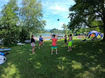 Damit ihnen zwischen den Kursen nicht langweilig wurde, konnten sie im See baden, am Strand Tischtennis spielen oder sich mit ihren Freundinnen und Freunden auf der Terrasse treffen und plaudern.